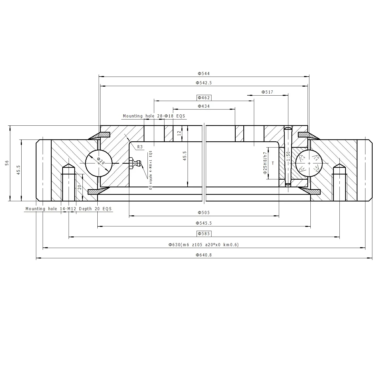 2. It has same structure with Single row Ball slewing bearing