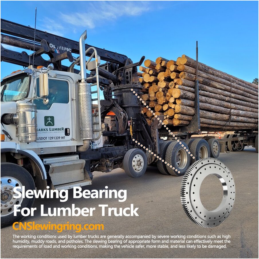 The working conditions used by lumber trucks are generally accompanied by severe working conditions such as high humidity, muddy roads, and potholes. The slewing bearing of appropriate form and material can effectively meet the requirements of load and working conditions, making the vehicle safer, more stable, and less likely to be damaged.
