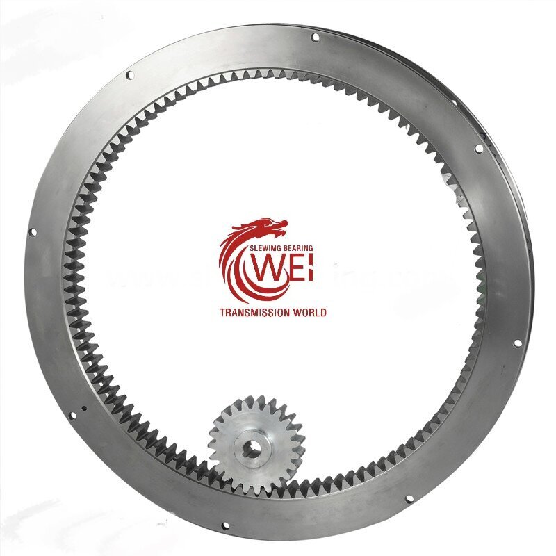 he motor or reducer drives the pinion to rotate, and the pinion drives the slewing bearing to rotate, thereby achieving the effect of driving the rotating platform to rotate.