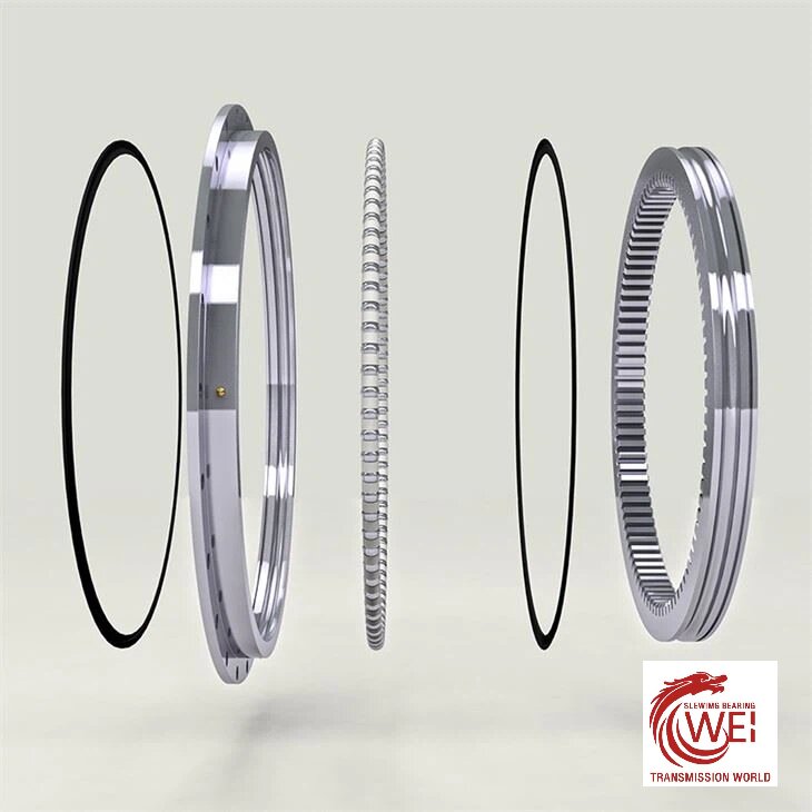 The inner and outer gears of the slewing ring are directly toothed on the inner or outer ring, and are processed by a gear hobbing machine or a gear shaper. If the working environment is loaded, it needs to be quenched. The internal gear slewing ring: the overall appearance is relatively neat, There is no need to install a safety cover at the meshing part of the gear and the slewing ring. The gear has better dust resistance, longer retention time by adding lubricant, and lower transmission contact stress of internal gear meshing, less wear and longer service life.