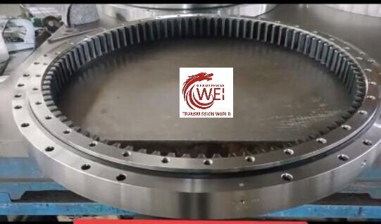 The motor or reducer drives the pinion to rotate, and the pinion drives the slewing bearing to rotate, so that the upper mechanism connected to it rotates accordingly.